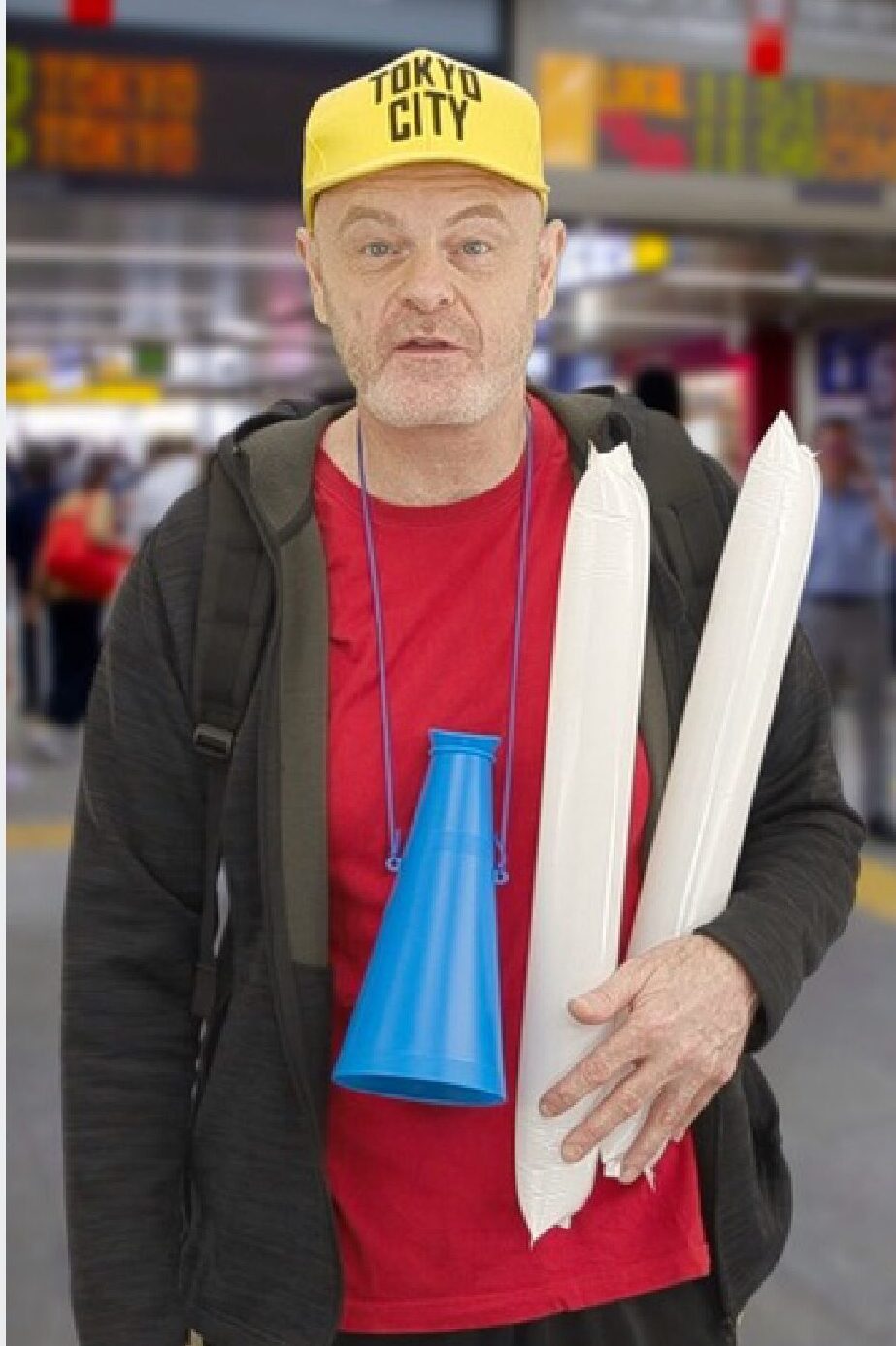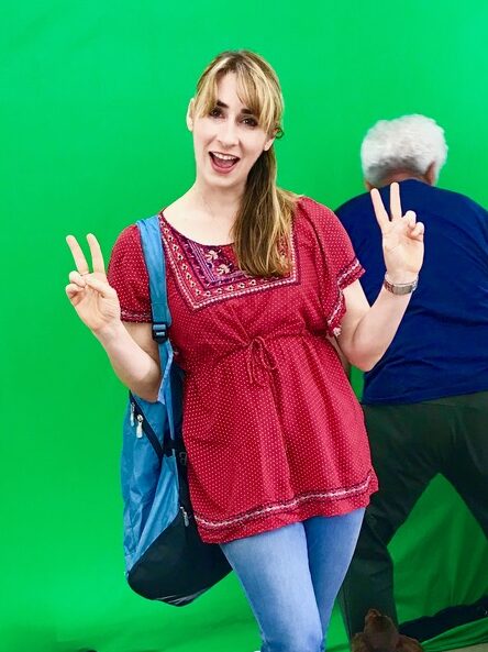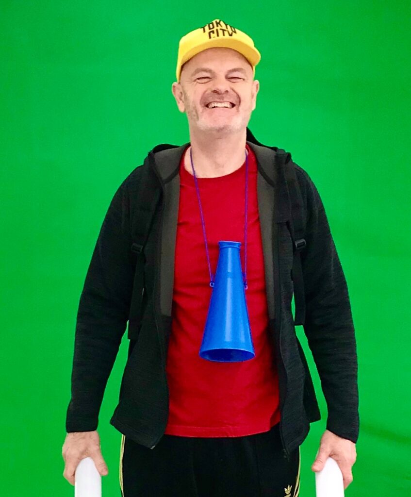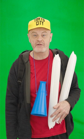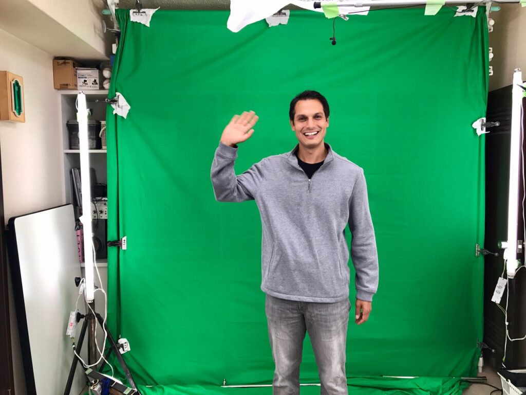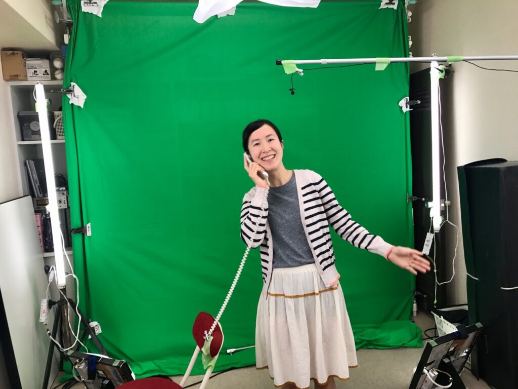 撮影後、グリーンの背景を抜き、状況に合った背景画像に差し替えます。
